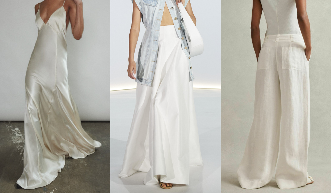 O monocromático branco cria looks limpos e modernos, especialmente no verão. Já as sobreposições em diferentes texturas — linho, tule, malha premium — criam profundidade e sofisticação, mesmo com uma paleta neutra.